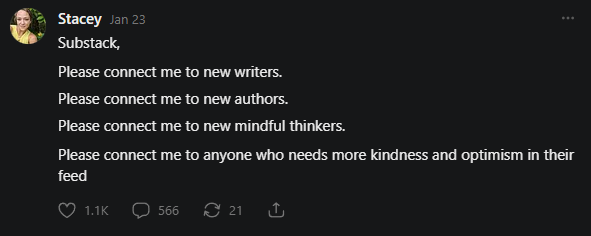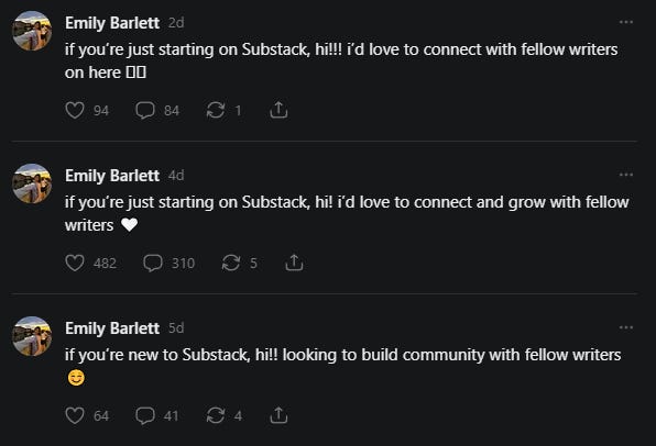 At first glance I was mostly impressed. Most of the accounts I scrolled through seemed real enough, and had a common interest with her. But the next day, substack thought I really enjoyed reading those replies, and my feed was chock full of them, and that’s what I’d really like to rant about.