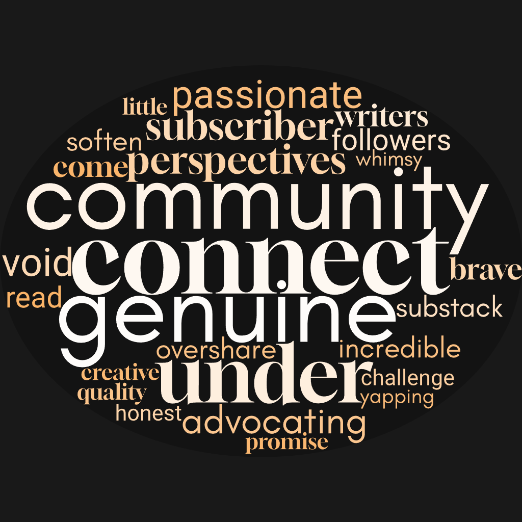 Maybe I should have skipped all this and just done a stupid dear substack note, but thought this was worth posting to navigate my own tensions with self promo and finding an audience, and I was inspired by Jayson Fritz-Stibbe. In all honesty, all I want is a similarly aged cohort to compare myself to with similar interests to bounce ideas and drafts off each other, but for the most part I’m stuck in gender war and TDS substack, which frankly isn’t conducive for meeting people in their 20’s.